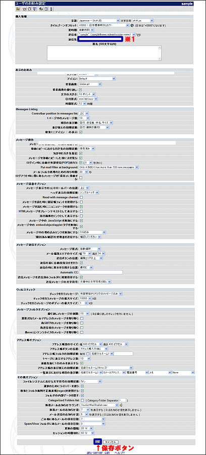 ※1 の ユーザID というフィールドにはWebMailを利用したいユーザ名を入力し、